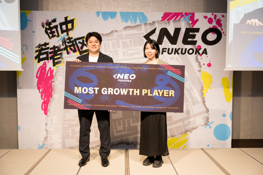 この賞は、ACADEMIAを通じて最も成長した人に贈られました。NEO福岡冠試合をプロデュースする「スペシャルマッチデイ」プロジェクトにて、自らリーダーに立候補。平日開催という異例の条件の中、3,879名の動員を達成しました。さらに約30校への学校訪問や会員企業各社を巻き込み、911名の新規動員という大きな成果を創出。入学当初からは想像もできないほどの主体性と圧倒的な行動力を発揮し、まさに“最も成長した存在”としてこの賞が贈呈されました。